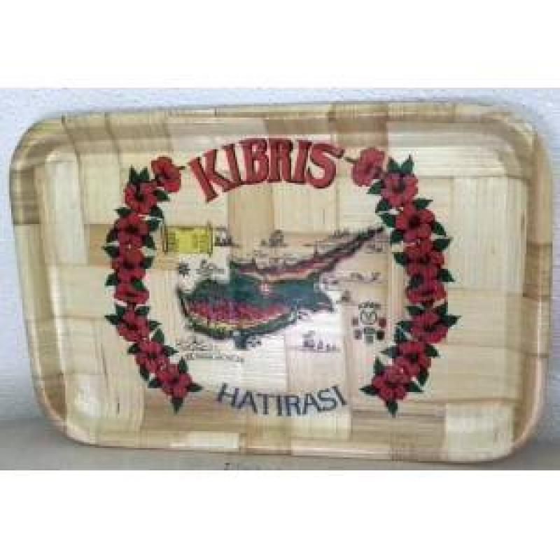 Son olarak üzerinde Kıbrıs haritası bulunan ve kocaman harflerle KIBRIS HATIRASI yazan şu ahşap tepsiler bundan 20 yıl önce anneannemin evinde vardı. Hatta başka evlerde de görmüşlüğüm var. Siz de görmüşsünüzdür onu mutlaka. Hah işte onlardan hala var :) Tam olarak aşağıdaki arkadaş. Ahretlik hediyelik eşyadır bu. Getirin bunlardan soyu tükenmesin bunların :)