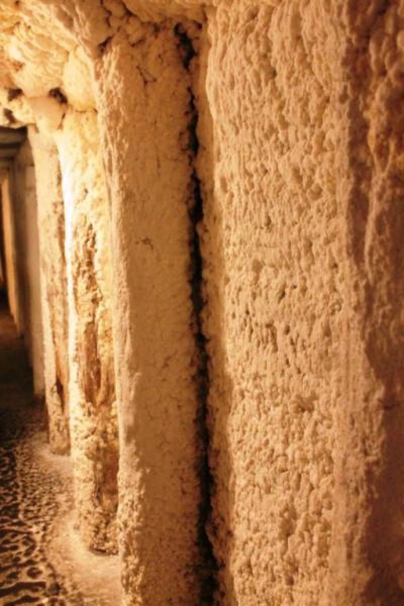 Koridorlar oldukça sağlamdır elbette ama kalın ahşap kütüklerle bir gram metal kullanılmadan destekler yapılmış birçok yere. Metal kesinlikle yok. Paslanır çürüyüverir mazallah! İçeride her türlü ateş yakmak, sigara içmek kesinlikle yasak elbette. Tuz cinleri var çünkü sigara içenleri kapıp kaçırmak için. Bak bir kaçını yakaladım, kanıtlarım var.