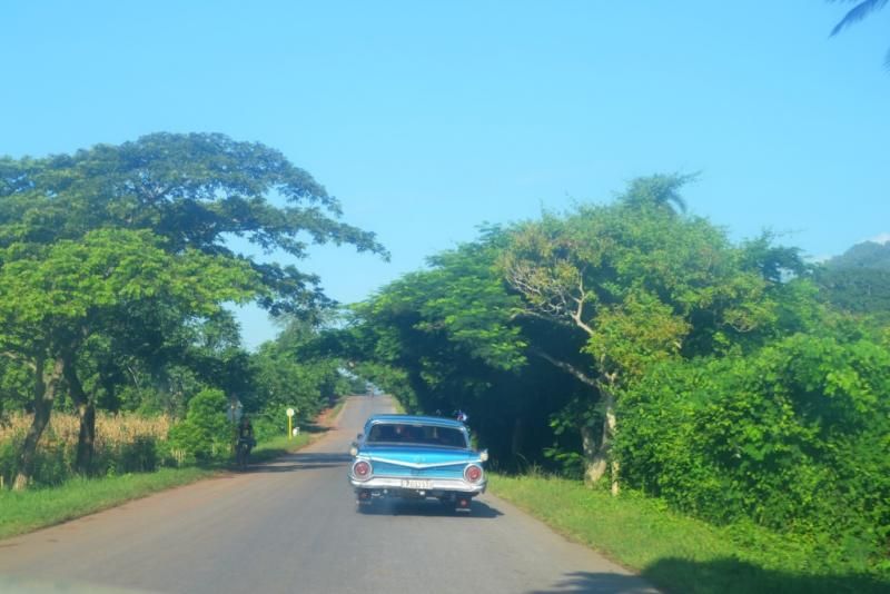 Kaldığımız evden erken saatte kalkıp “bicitaksi” denilen üç tekerli motorlu taksi ile terminalin yolunu tuttuk. Terminalde otobüse binmek üzereydik ki bizi Alman bir turist çevirdi. Eğer Vinales’e gideceksek taksi ile daha ucuza ve daha kısa sürede gidebileceğimizi söyledi. Otobüs biletini sorduğumuzda gerçekten daha pahalı olduğunu ancak 5 turist taksi kiralarsak daha ucuz olduğunu görüp adam başı 15 Kuk (45 TL) vererek 60 model Dodge marka araca beş erkek atladık. Küba’da bu taksilerin halen uzun yollarda dahi gidebiliyor olması üretici firmadan çok aracı kullanan halkın maharetinden olsa gerek. Çünkü o model araçlar birçok ülkede halen olmasına rağmen kullanımda değil. Bu arada araçta sinyal yandığı zaman içeride ambulans sesi gibi bir ses yankılanıyordu, kornaya bastığında ise en az kamyon kornası gibi bir ses çıkarıyordu. Zaten insanların da sürekli gür sesle konuştuğunu düşündüğümde bu insanların normal insandan daha az duyduklarını düşünmeye başladım.
