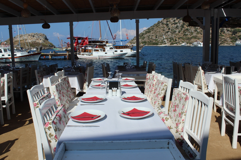 Gümüşlük koyunda yapılabilecek en güzel şeylerden biri buradaki restoranlarda gün batımını izlerken yemek yemek.