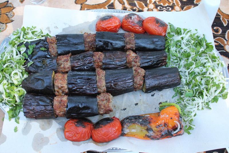 Burada Harran’a özgü kebap söylemiştik yanında da salata ve ayran. Biz iki kişiyiz sadece ama yemek bir geldi sanki ordu doyacak. Porsiyonlar o kadar büyük ki… Ancak gelen tabağın üçte birini bitirebiliyoruz. Közde patlıcanın tadı hala damağımda.