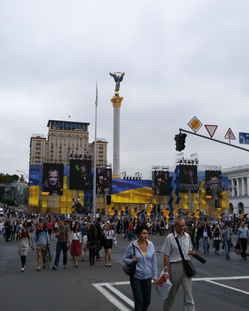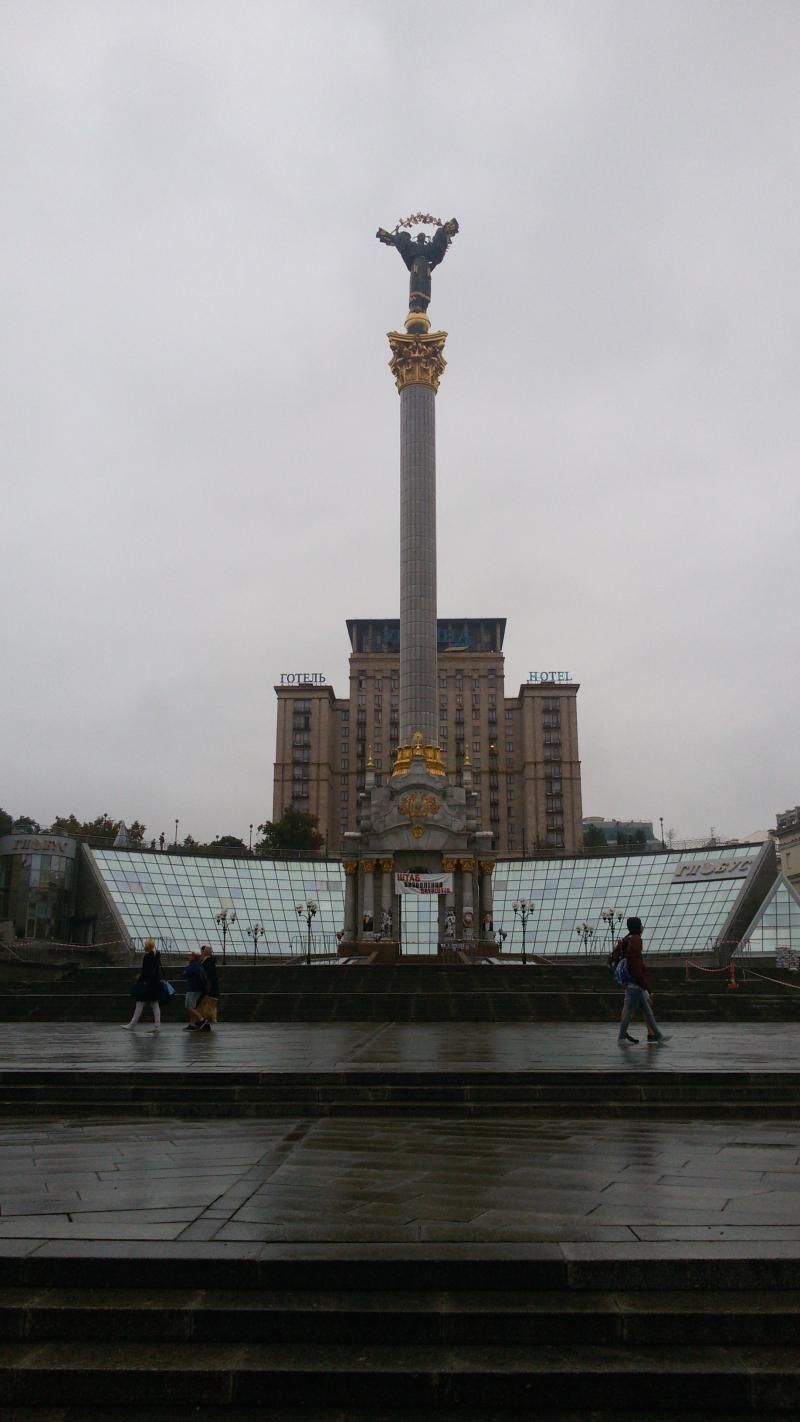 Yaklaşık 7 saat süren çok rahat tren yolculuğumuz neticesinde sabahın erken saatlerinde Kiev'e ulaştık. Hava o gün şansımıza kapalı idi. Hemen tren garının karşısındaki duraklardan 114 numaralı otobüs ile şehrin en merkezi konuma olan Bağımsızlık Meydanı'na (Maidan Nezalezhnosti) ulaştık. Bizim 4 günlük Kiev maceramızın merkez konumu her zaman Bağımsızlık Meydanı olmuştu. Hostelimizin check in saati 12.30 olduğundan önce hosteli bulmakla işe koyulduk. Hostelin bağımsızlık meydanına yakın olduğunu biliyorduk, tercih sebebimizde buydu. Yürüme mesafesi ile 3 dk'lık bir uzaklıktaydı. Hostelimizin ismi City Centre Hostel. Geceliği yaklaşık olarak 12 TL, yani 96 Grivna idi.