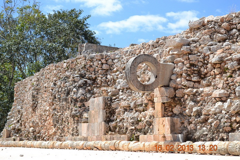 Top alanına geldiğimizde ilginç bir oyun hikayesi dinliyoruz. Yüksekçe bir duvara dikine bir beton halka saplanmış, top buraya eller kullanılmadan sadece omuz, diz, ve dirsek kullanılarak sayı yapılıyor, ilginç olan kaybeden takımın kaptanı kazanan takımın kaptanının kafasını kesiyor ve böylece akan kan toprağa verim sağlıyormuş.