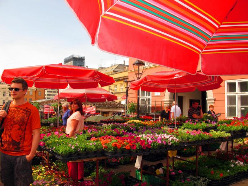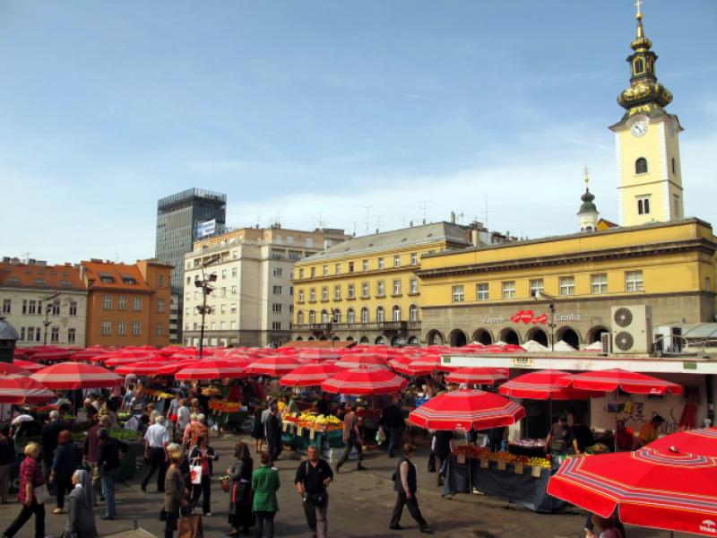 Viyana’dan 5 saatlik, son derece rahat bir otobüs yolculuğu ile öğleden sonra Zagreb’e varıyoruz. Daha önce Zagreb’e gitmiş bir yakınımızın tavsiyesi üzerine kuzeyde, eski şehre yakın bir bölgede bulunan Krovovi Grada isimli aile pansiyonunda bir oda kiraladık buraya gelmeden önce. İki kişilik, banyolu ve tuvaletli bir odaya gecelik 40 Euro ödüyoruz. Bu fiyat, Hırvatistan gezimizin geri kalanında kaldığımız yerlerle kıyaslanınca oldukça yüksek ama anlaşılan başkent Zagreb’de böyle merkezi bir yerde daha uygun fiyatlı bir oda bulmak pek mümkün değil. Krovovi Grada eski şehirde, bol kafeli, restoranlı, turistli bir ara sokak üzerinde ve meşhur Dolac Fruits & Vegetables Market’a (Dolac Pazarı) yürüme mesafesinde konumlanmış. En güzeli de sokak kapısından girdiğiniz anda içeride küçük, serin, sessiz bir avlu ile karşılaşmak. Odamız bu avluya açılıyor. 35 derecelik, turistli, kalabalık, gürültülü Zagreb sokağından bir anda bu sessiz, serin avluya girivermek insanı nasıl da dinlendirip, rahatlatıyor uzun bir günün sonunda. Yani ödediğimiz fiyat, oda kalitesi için biraz fazla kaçsa da sırf bu serin bahçe avlusu ve eski şehrin göbeğindeki konumu nedeniyle Krovovi Grada’dan memnun kalıyoruz.