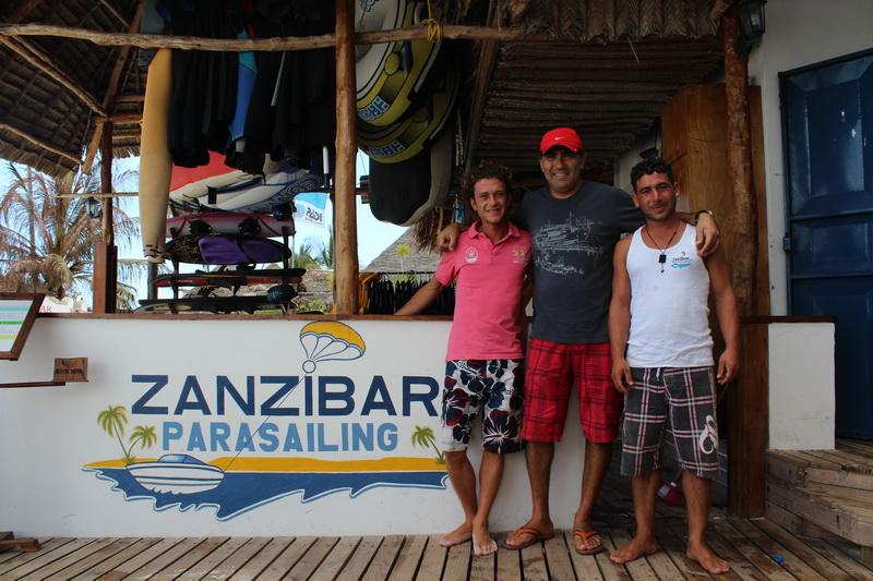 Rüzgar akımından dolayı dünyada en yüksek parasailing’in Zanzibar’da yapıldığını öğreniyoruz. Parasailing bir motor yatın arkasına takılan paraşütle yapılıyor. Bu adrenalini yaşasak mı diye düşünürken en azından gidip yapanlara bakalım diye karar verdik ve oraya vardığımızda apayrı bir şok yaşadık. Bu işi yapan şahıs Alp Bey isminde Marmarisli bir Türk. Yatı kullanan kaptan ve yardımcı personel de Türk.