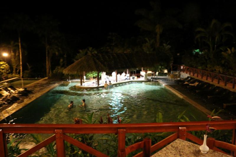 Kosta Rika’nın Alajuela Eyaleti’nde, Arenal Gölü ile Arenal Volkanı’nın kuzey ucu arasında yer alan Tabacon Sıcak Su Kaynakları, Arenal Volkanı tarafından doğal olarak ısıtılıyor. Burada bulunan kaplıca tesisleri geceyarısına kadar açık ve dolayısıyla bu jeotermal sulara gece saatlerinde girip, orada bulunan tesislerden birinde yemek yiyerek güzel bir gece geçirmek mümkün.