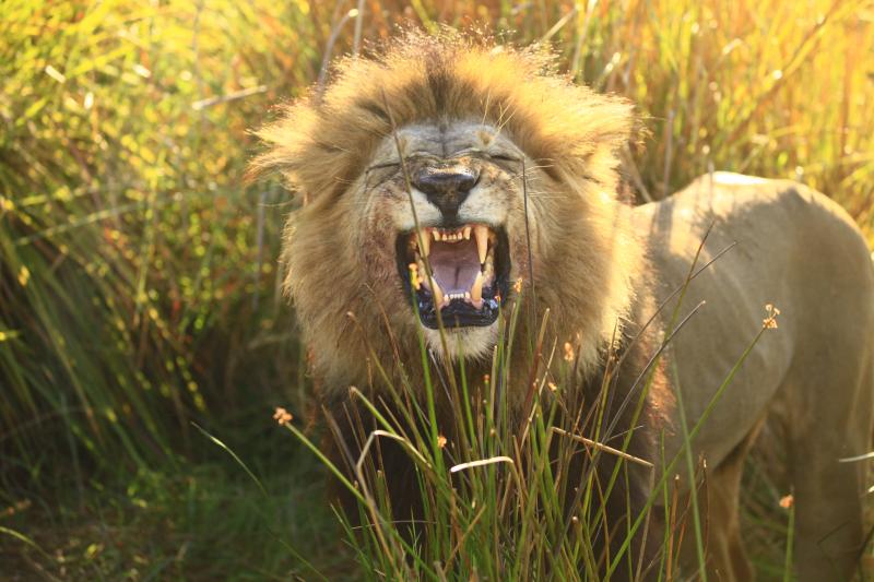Kamptaki son öğleden sonra safarimizde bir gün önceki aslan ailesinin yanına gitmek için rehberimize rica ettim. Benim aşkım büyük kediler, “kedilerin peşinde kendimi buldum ben” Yanlarında gördüğüm her şey de hayatın keyfi… Ve evet yine aynı yerdeydiler ve bu sefer yanlarında sürünün başı ormanların kralı erkek aslan da vardı.