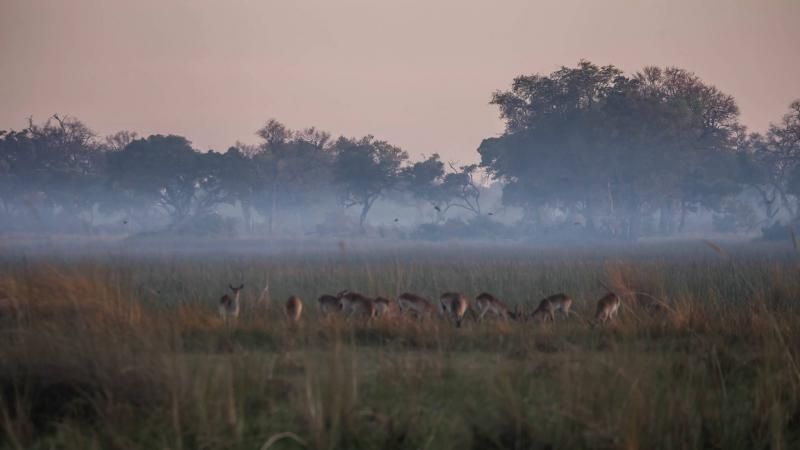 Biz kasım ayında gittiğimiz için su miktarı ne çok yüksekti ne de tamamen kuraklaşmıştı. Deltaya çok nadir yağmur yağdığını öğrendik. Su, Angola’ya yağan yağmurun Okavango Nehri ile bölgeye taşınması sayesinde bölgeye hayat veriyor. Bu nehir olmasa zaten her yer Kalahari Çölü olacak. Okavango Nehri ile Kalahari Çölü'nün savaşı bu deltada yaşanıyor. Kim galip geliyor hala belli değil. Biraz önce bahsettiğim deniz kumu değil anlayacağınız çöl kumu ve bu ilginç görüntü savaşın bir kanıtı.