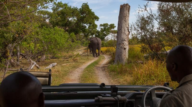 Hiçbir binanın olmadığı havaalanından kampımıza doğru yola çıkıyoruz. Yol dediğimiz şeyi Afrika yolu olarak anlayın lütfen. Araçların gidip gelmesi nedeni ile düzleşmiş topraktan bahsediyorum. Yol sık sık fillerin devirdiği ağaçlarla kesintiye uğrayan engebeli bir yolculuk sunuyor bize (buna Afrika masajı diyorlar). Yani daha kampımıza varmadan safariye çıkmış oluyoruz.