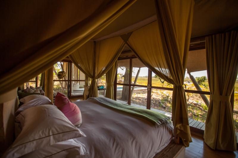 Kampımıza ulaşıncaya kadar tozlu yolda 2 saat süren yolculuğumuzda bize filler, zürafalar, zebralar ve impalalar hoşgeldin diyor. Afrika’ya her gelişimde yeniden aşık oluyorum. Kaldığımız kamp tüm yıl boyunca su bulunduran bir göletin hemen yanında kurulmuş 8 konuk çadırı, bir lobi çadırı ve hizmet alanlarından oluşuyordu. Kampa gelişimizde bizi, tüm kamp çalışanları yerel dilde söyledikleri neşeli bir hoşgeldin şarkısı ile karşıladılar. Bu da benim tüm yol yorgunluğumu alıp içimi çocuksu bir neşe ile dolduruverdi. Kampa geldiğimizde saat 15.00 civarındaydı. Öğleden sonra safarileri 16.30'da başladığından hoşgeldin kokteyli, güzel bir duş, leziz atıştırmalıklar ve rahatlatıcı bir çay için bol bol vaktimiz oldu. Çadır dediğimizde öyle çocukluğumuzun milli parklarında kurduğumuz çadırlar gelmesin aklınıza. İçinde sıcak su, harika banyo, cibinlikli kuş tüyü yatak olan ama gene de her yeri bezden yapılmış hatta gölete bakan kısmı dışarısını görebilelim diye yalnızca sineklik olarak bırakılmış bir çadır bu.