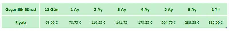Detaylı ve güncel bilgiler web sitesinde yer alıyor. Her sene başında ücretler tekrardan belirleniyor. Problem çıkmaması için gitmeden Turing’in internet sitesine göz atmanızı öneririm.