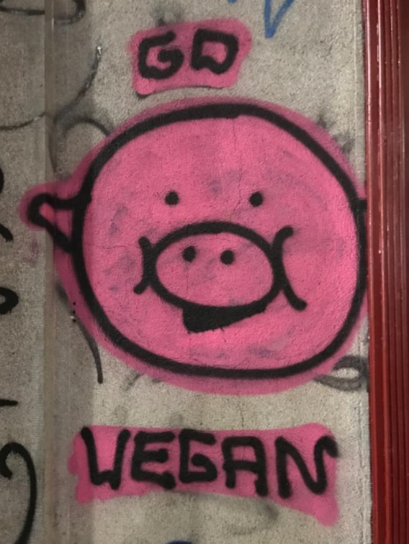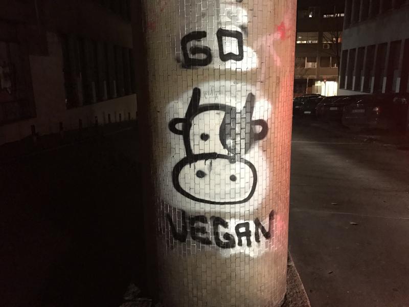Belgrad’a geldiğimize göre buradaki grafitilerden örnekler vermeye başlayabiliriz. Önce Skadarlija’da fark ettiğim “go vegan” yani “vegan ol” yazlı birçok grafiti Belgrad’da karşıma çıktı. Daha sonra şehrin farklı yerlerinde de bunun varyasyonlarını gördüm. Pek de vegan bir şehir olmayan Belgrad’da bu grafitilerden bolca olması gerçekten şaşırtıcı. Farklı yerlerde gördüğüm bir kaç go vegan grafitisini size de göstermek isterim.