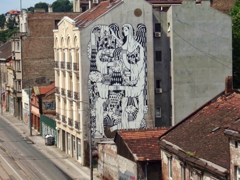 Bazı grafitiler elbette ki diğerlerinden daha ünlü hatta Sırbistan resmi sayfasında bir “duvar resimleri” sayfası bile var. Bu sayfaya da uygun görülmüş olan grafitilerden biri, Belgrad’ın en ünlü grafitilerinden biri “La Santa de Beograd”. Giom Olbi Remed tarafından Belgrad Yaz Festivali sırasında yapılmış. Kendi anlattığına göre sanatçı Belgrad’ın tarihte 38 kez imha edilip yeniden inşa edildiğini öğrendikten sonra bu grafitiyi yapmaya karar vermiş.