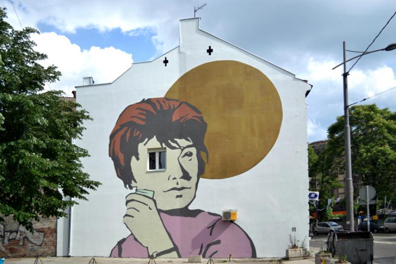 Yine çok uzaktan değil, Savamala’dan bir grafitiyi tanıtmak istiyorum size: Güneşi beklemek. Branko Köprüsü’ne yakın tramvay yollarına bakan grafiti Mixer Festivali’nde yapılmış. Macaristan’dan gelen bir kutudaki film reklamından esinlenen Aleksandar Maćašev bu grafitiyi yapmaya karar vermiş. Fikri ise Stevan (Wunste) Šoln duvara aktarmış.
