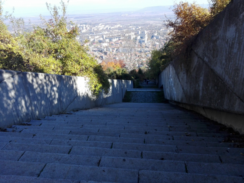 Bu anıt ve heykelden biraz daha aşağı sürünce, pek hareket göze çarpmayan, bir yer var. Tepedeki bina artık kullanılmıyor gibi geldi bana… Yukarıda dediğim gibi Bulgaristan’da pek çok yer böyle sessiz, sakin, kimsesizdi.