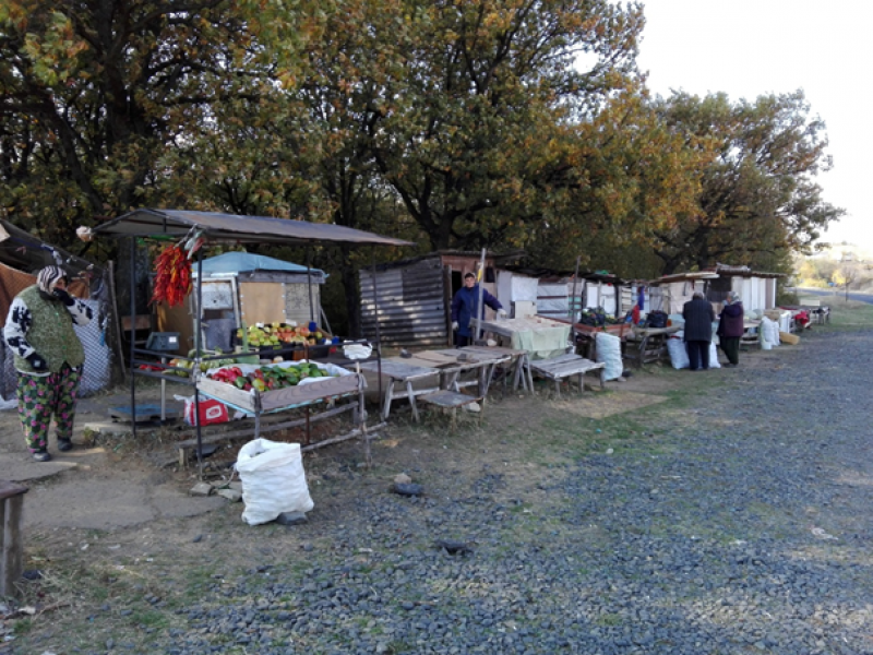 Yükseklerde yol kaplaması düzeldi. İnişe başladığımda her iki yanımın açıldığı ve rüzgârın sertleşmeye başladığı bir köyün (yanılmıyorsam Gabrovo) az ilerisinde teyzelerle karşılaştım İşte bu teyzelerden aldım balı! Kendi üretimleri. Nefis bir bal ve fiyatı inanılmaz ucuzdu. İki kavanoz aldım. Fiyat demişken bu tezgâhlarda Türk Lirası da geçiyor :) Teyzelerle biraz sohbet (Türkçe tabii ki) ettim, her bir teyzeden birer parça da olsa alış veriş ederek, kendi mahsulleri olan domates, biber, patlıcanları doldurdum bagajlarıma. Domatese bayıldım. Çekirdeklerini ekmek üzere saklıyorum.