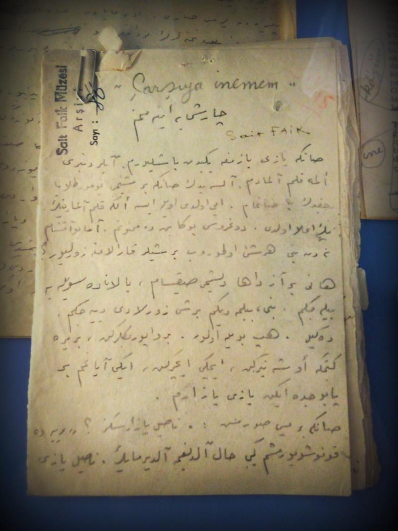 "Muhabbet koyu ama böyle giderse müzeyi görmeden, Sait Faik Müzesi yazısı yazmak suretiyle biz de yeni bir polemik konusu olacağız" diye takılıyorum Taki’ye. Hadi o zaman diyor, yavaş yavaş caminin yanında aşağıya seyirtip, kapanmadan yetişelim diyor. Adımlarımız daha da hızlanıyor. Bir taraftan da anlatmaya devam ediyor. "Müze 2009’da yeniden düzenlenmek üzere tadilata alındı ve ancak yepyeni bir yaklaşımla ve sergileme tekniği ile 11 Mayıs 2013’te kapılarını açtı. Uzun sürdü ama bence bu kadar beklemeye de değdi" diyor. "Bu düzenleme sırasında üstadın edebi ve ruhsal dünyasını ziyaretçilere sunabilmek maksadıyla tüm eşyaların orijinal olmasına özen gösterildi. Evin misafir odası ve Sait Faik’in yatak odası aslına uygun olarak yeniden yerleştirildi. Sana daha önce de söylediğim el yazmaları ve kendine imzalanmış kitapları da meraklıların beğenisine sunuldu. Benim meftunu olduğum objeler ise 'Sait Faik Abasıyanık’ın Burgaz’ı' adı verilen ve muhteşem manzaralı çatı katı odasında sergilenen oltaları, hasır şapkası ve potinleri" diyor. Sonra da bir tenkitini ekliyor, müzede sergilenmeyi fazlaca hak eden şu utanç belgesi diyerek Sait Faik’in pasaportunu gösteriyor. "Bu memleketteki bir zihniyetin en güzel ama aynı zamanda da en acı örneğidir" diyor. Anlamıyorum, garip garip suratına bakıyorum. Bana değil, pasaporta bak diye giydirdikten sonra, mesleği anlamına gelen “Sanatı” hanesinin karşısında ne yazıyor diye soruyor. Gözlerime inanamıyorum: “San’atı: Yok” yazıyor, yutkunuyorum. Taki ise saydırıyor. "Ulan, bu memlekette Sait Faik için 'Sanatı Yok' diyecek adamın kendisi yok hükmündedir" diyerek, sunturlu Rumca bir küfür savuruyor.