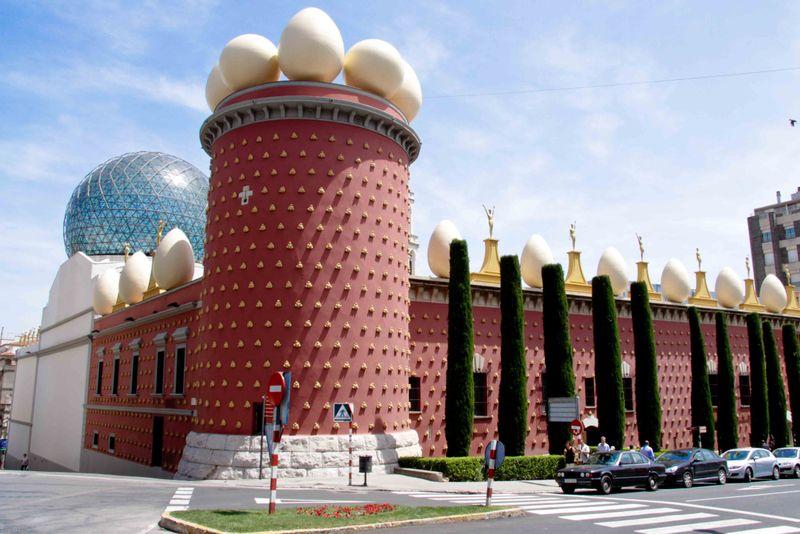 Bordo rengi müze binasının üzerine Dali, ekmeği simgeleyen şekiller yaptırmış, kimi çevreler ise bu şekilleri dışkı olarak algılamış. Müzenin önündeki meydanın adı Gala-Salvador Dali Meydanı. Meydanda ünlü Fransız sanatçı Meissonier’in traktör tekerlekleri üzerine oturtulmuş heykelleri ve Newton’a ithaf edilmiş bir heykel bulunuyor. Biletinizi alıp müzenin içine girdiğinizde bir avluyla karşılaşacaksınız. Avlunun ortasında bir Cadillac var, eserin adı da İçinde yağmur Yağan Cadillac. Arabanın yanındaki düğmeye para attığınızda yağmur dışarıda yağacağına içinde yağıyor!