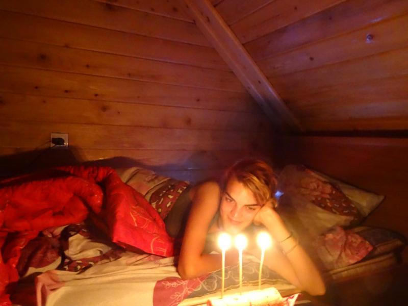 Yaklaşık altı gündür banyo yapmıyorduk. Önce Destan duşa girdi. Ben de yiyecek bir şeyler hazırlayıp markete gidip küçük bir kek aldım. Mum aradım ama bulamadım. Küçük bir kilise görünce benim ampüller yandı. İçeriye selam çakıp bir de mum yakıp 0.20 Lari de bağış kutusuna attım. Saat 12.00 olduğunda sürprizi patlattım. Çok sevindik ikimiz de… Yolda olup doğum günü kutluyorduk. O kadar stres ve iş gerginlikleri, haksızlıkların arasında küçük ve kocaman bir dünyayı şimdiden epey turlamıştık. Mutluyduk. Dahası da vardı. Heyecanla sıcak yatağın kıymetini bilerek uykuya daldık.