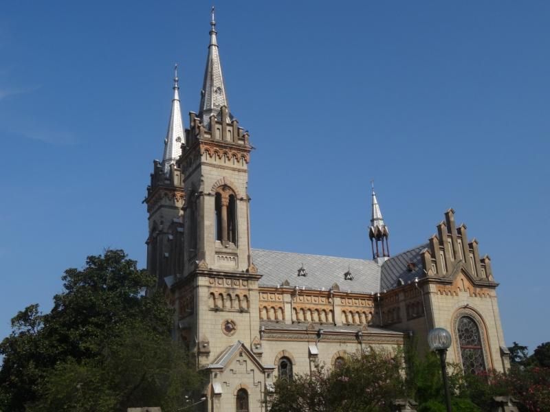 Kahvaltı da Xaçapuri yiyelim, hem de şarj cihazlarını takarız derken bir Türk Lokantasına oturmuşuz, Bakire Meryem Kilisesi (Virgin Mary)’nin arka tarafındaki parkta. Kilise, gotik mimariyle yapılandırılmış. Atmosferi hoştu. Yanında da ince belli ve kırmızı-beyaz tabakla çay içince derinlere dalıyor insan.