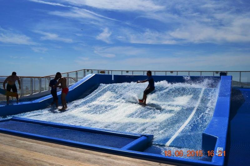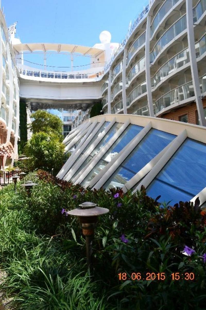 Gündüz ise gemide zaman geçirmek, oyalanmak, eğlenmek için sayısız aktiviteler var. Örneğin spor yapmak isteyenler için spor salonu, yürüyüş alanı, birkaç tane havuz, jakuziler, havuz kenarında canlı müzik ve aktiviteler, su sporları, örneğin bu gemide ilk kez gördüm, dalga sörfü. Spa ve güzellik salonu, kuaför mevcut ancak ücretli. Meydanda hemen her şey, markalar da dâhil satan dükkânlardan alışveriş yapabilir, çeşitli eğlenceli derslere, seminerlere katılabilirsiniz. Geminin tam orta bölümünde ise ünlü Central Park, evet yanlış duymadınız, yemyeşil ağaçları ve bitkileri, kafe ve restoranlarıyla, her akşam bizlere klasik müzik dinletileriyle, minyatür bir New York Central Park. Atladığım konular vardır ama sonuç olarak sıkılmaya zaman bulamayacaksınız.