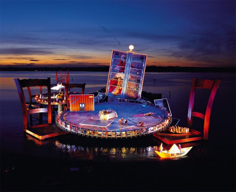 Şüphesiz dünyanın en büyüleyici sahnelerinden biri olan The Floating Stage (The Seebühne) yani Yüzen Sahne her yıl ağustos ayında Avusturya’nın (https://gezimanya.com/avusturya) Bregenz kentinde gerçekleştirilen Bregenz Festival’i kapsmaında Constance Nehri’nin kıyısında kuruluyor. 7 bin kişiyi ağırlama kapasitene sahip bu dört tarafı sularla çevrili amfitiyatro pek çok opera ve müzikal gösteriye de ev sahipliği yapıyor. 1946’dan bu yana düzenlenen Bregenz Festivali sayesinde kentin kültürel mirasına dahil olan bu sahnenin en önemli özelliği şaşaalı sahne dekorları, ışık ve ses sistemi ve her sene yenilenen büyüleyici sahnesi.