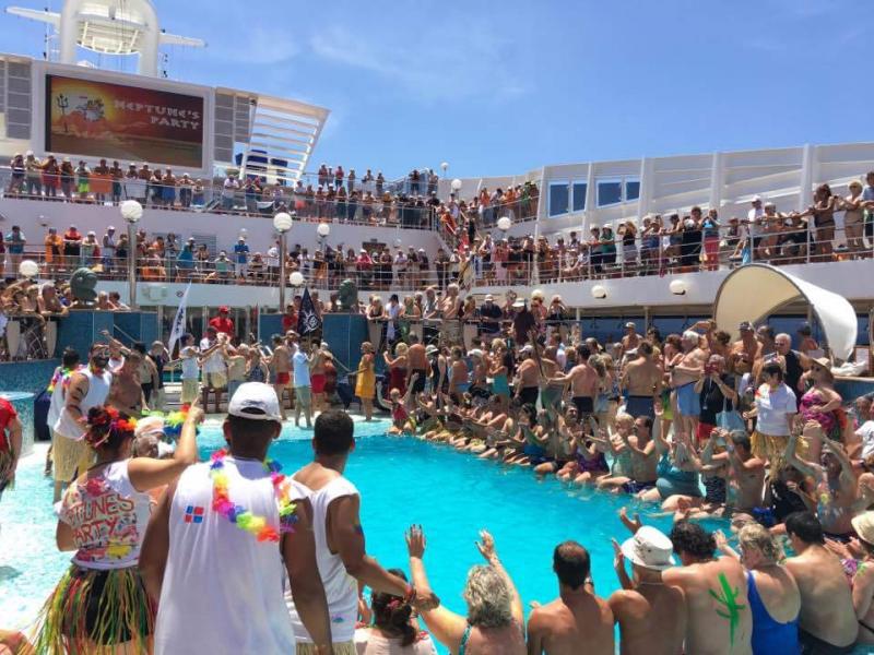Neptün Partisi’ne katılmak gibi bir planım yoktu. Gemide havuza girmek adetim olmadığı gibi bir de yüzümü gözümü boyatıp tören halinde yüzlerce kişi havuza girmeyi düşünemiyordum bile ama Arjantinli arkadaşın dolduruşuna gelmiştim bir kere. Hayatımın en rezil partisi olacağını bilmeden katıldığım bu parti en unutulmaz ve “iyi ki” dediğim bir anıya dönüştü. Yüzlerimizi ve vücutlarını rengârenk boyatan bir güruh olarak sırayla havuz başına indik. Burada Neptün kılığına soktukları asalı bir ihtiyar ve kaptanımız Francesco Di Palma’nın liderliğinde iğrençlikler silsilesi başladı. Öncelikle teker teker başımızdan aşağı kepçelerle beyaz şarap döküldü, ardından yüzümüze gözümüze çiğ kalamarlar sürüldü, peşi sıra havuzun sığ sularına çömdük ve beklemeye koyulduk törenin geri kalanını. Sonrasında başımızdan aşağı salça sosları döküldü ve Neptün’e "tamam mı, devam mı?" sorusu üzerine rezillikler silsilesi tam gaz devam etti. Sırayla süt kreması, un ve kakao sonunda Neptün ikna oldu ve nihayet kutsandık(!) Ancak rezillik bitmemişti çünkü onca kişi bir de o pislik içinde havuza atlayacaktık, sonrasında da dans…