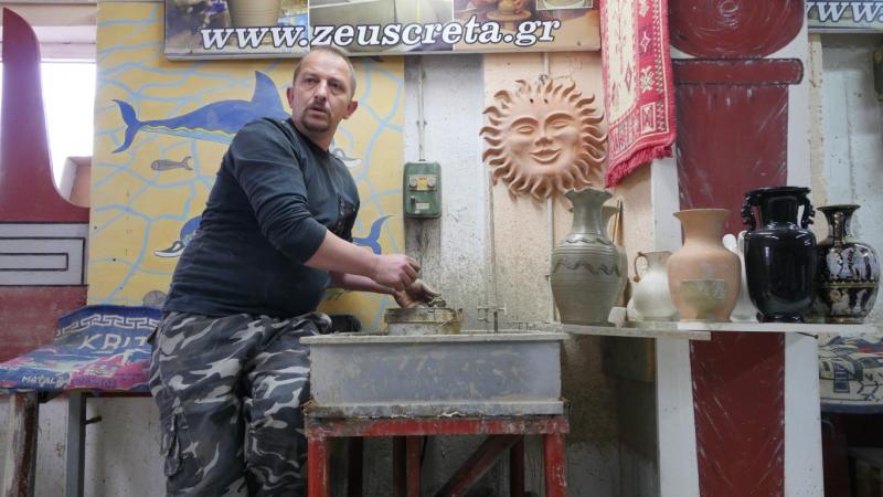 Thrapsano’nun, Kentri’nin ve Margarites’in çömlekçileri kili tıpkı Minoanlar’ın binlerce yıl önce yaptıkları gibi işliyorlar.