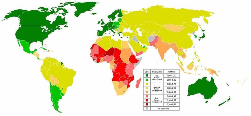 Listenin dibine demir atanlarsa şüphesiz ki Afrikalılar. İnsani gelişmişlik ve cinsiyet eşitliği konusunda Nijer ve Dem. Kongo son sırayı paylaşıyorlar. Kara kıtanın en parlak ülkesi ise Avrupai ada ülkeleri.