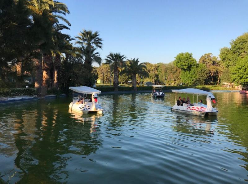 Fuarın etrafında dolaşan minyatür trene binmek ise başka bir zevkti. Böylelikle çok fazla yorulmadan pek çok yeri de görebilirdiniz. “Hayvanat Bahçesi” ve uzun palmiyelerin arasından dolaşarak, fuarın tüm renklerinin ve ışıltısının içinde buluverirdiniz kendinizi. Tren ile yanından geçerken, hayvanat bahçesinin sembollerinden, “Fil Pak Bahadır”ı görmek için de çabalar dururduk. Göl gazinosu etrafında deniz bisikletlerine binmek, “Kaskatlı Havuz'un müzik eşliğinde hareket eden, rengarenk ışıklı fıskiyelerinden gelen suyun dansını izlemek, hatta kadın heykellerinin yanı başına oturarak fotoğraf çektirmek ise fuarın klasiklerindendi diyebilirim.