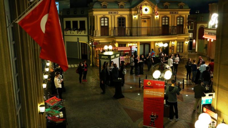 Aynı bir ülkeye gider gibi havayolu kontuarından giriş yapıyoruz. Kidzania Cumhuriyeti’ne girdiğimizde Kidzania çalışanları bizi meydana yönlendirdi. Burada Kidzania Cumhuriyeti’nde neler yapabileceğimizi anlatırlarken aynı zamanda bizler de meydanda kurulmuş olan stantların çevresinde yerleştik, hem kokteyle katıldık hem de etrafı inceledik. Aslında bu cumhuriyete gelen çocuklar öncelikle işe yerleştirme ofisine gidip Kidzania’daki yapabileceği meslekler konusunda bilgi ediniyor ve seçtiği işe başvurup çalışmaya başlıyor. Bu durum biz yetişkinlere direkt kokteyl alanında anlatıldı.