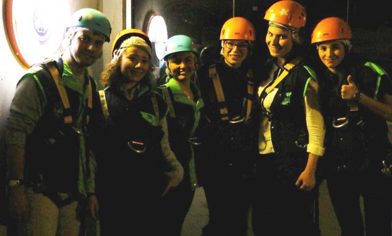 Sonra oldukça etkileyici bir inşaat alanına girdim. Burada inşaat mühendisliğini tecrübe etmek için 15 Kidzos ödeme yaptım. Kidzania’da her alan çok güvenli ve tertemiz. Mesela burada kafamıza baret takacağız ama öncesinde kafamıza bone onun üzerine baret takıyoruz.