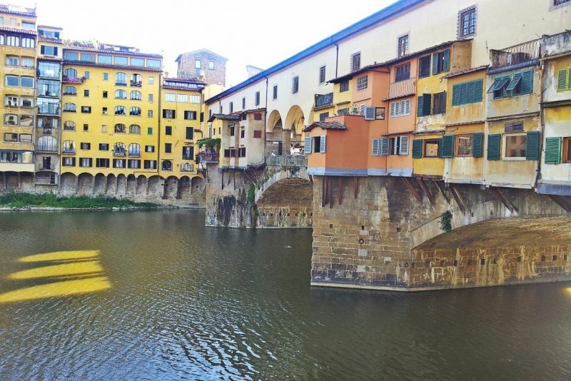 Almanya en acımasız olduğu 1944 yılında Hitler ile büyük acılar yaşatmanın yanında, her tarafı yakıp yıkıyor. İtalya, Floransa’ya da geliyor. Buraya gelene kadar birçok tarihi yapı yerle bir edilmişti. Ama Hitler, Eski Köprü’ye dokunmuyor. Diğer köprülerde olmayan dükkânlar ile süslü bu yapı bağışlanıyor. İşin sırrı da 1938 yılında Mussolini’nin Hitleri Floransa’da misafir etmesi ve köprüye karşı muhabbet etmelerinde saklı. Arno Neri üzerinde Floransa’nın altın kemeri gibi duruyor, Ponte Vecchio yani Eski Köprü. Köprünün yapımı 900’lü yıllara dayanıyor. Roma döneminde savunma amaçlı kullanılan Eksi Köprü, Rönesans döneminde ticari amaçla kullanılmaya başlıyor. Üzerinde kurulan ahşap dükkânlar ile şehrin önemli simgesi olmaya başlıyor. Zamanla köprü kasaplar ile doluyor. Yöneticiler, kasaplara sattıkları yerlerin bakımsızlığını görünce sonradan pişman olmadılar değil! Buradaki ahşap yapılar, taşan sulara ve yangınlara karşı dayanamıyor. Zamanla yerini betona devrediyor. Kasaplar da artık yok yerine kuyumcular gelmiş.