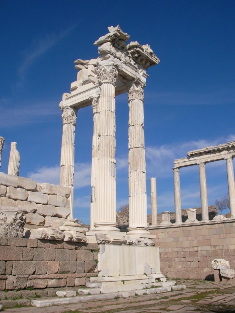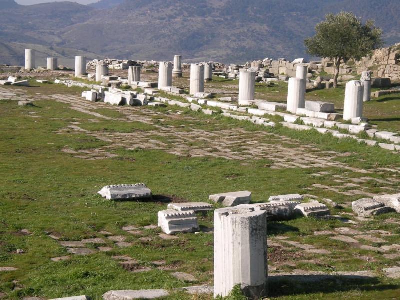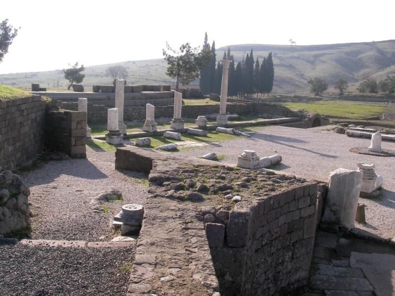 İlk durağım Serapis Tapınağı… Mısır Tanrılarına adanan, kırmızı ateş tuğlalarıyla yapılmış görkemli tapınağın eski halinden ne yazık ki eser yok. Mermer kaplamaları dökülmüş. Tuğlalar ortaya çıkınca da, halk adını değiştirivermiş hemen. “Kızıl Avlu” demişler. Tapınağa, üç adet anıtsal kapıdan giriliyordu ama şimdi sadece bir kısmı ayakta. Ana binası, aşağı şehrin merkezindeki “Ne yerde, ne gökte” denilen, şu an yıkık dökük bir mahallede. Kozak Dağları’ndan gelen, Bakırçay’ın kollarından, Selinous Çayı üzerindeki çok büyük bir alan üzerinde. Kesişen iki tünel üzerindeki bir avlunun ortasında. Yanlarında iki dairesel kule var. Bunların önünde de ana binanın önüne bağlantılı avlular. Çatıyı taşıyan insan biçimindeki desteklere ise kim bilir ne oldu? Girişteki eşik, tek parça bir mermer bloktan, içeride bulunan sütunlar Kozak taşından. Törenlerde arınmak için kullanılan sığ mermer havuz ile derin kuyu da görünmüyor. Yer altındaki tünelden geçerek gelen rahibin içine girip, ayini gerçekleştirdiği havuzun arkasındaki Serapis heykelini umutsuzca arıyor gözlerim. Tarih boyunca önemini korumuş, Anadolu'nun en görkemli dini yapılarından biri olan tapınak İncil'e Hristiyanlığın ilk yedi kilisesinden birinin cemaatinin tapındığı yer olarak geçmiş. Hatta buraya “Küçük Ayasofya” bile demişler. Kulelerden biri bir ara cami, bir ara da hapishane olarak kullanılmış. O yüzden biraz daha bakımlı. Binaların arasına sıkışıp kalmış olsa da hala çok göz alıcı...