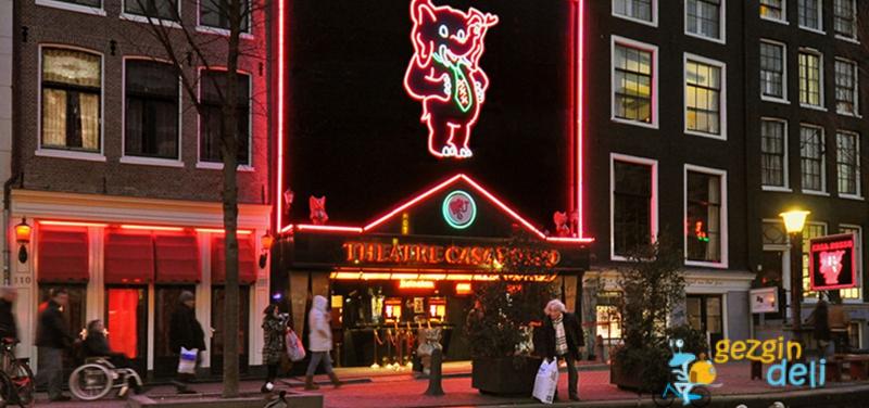 Red Light Mahallesi'nde yukarıda gördüğünüz gibi fil resminde tiyatrolar göreceksiniz. Tabelasında Theatre (Tiyatro) yazıyor olacak. Fakat bu bizim bildiklerimizden biraz farklı bir tiyatro. İçeri girmek için kapısında kadın ve erkeklerin uzun kuyrukları oluşturduğu bu tiyatrolarda canlı seks gösterileri yapılmaktadır. Bu tiyatroların en meşhuru da resimde gördüğünüz Casa Rosso'dur.