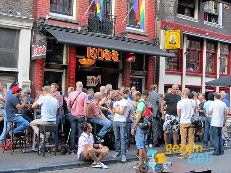 - Amsterdam'da veya Red Light Mahallesi'nde gezerken yukarıdaki resimdeki gibi rengarenk bayraklı bir mekan görürseniz, burası bir gay mekanıdır.