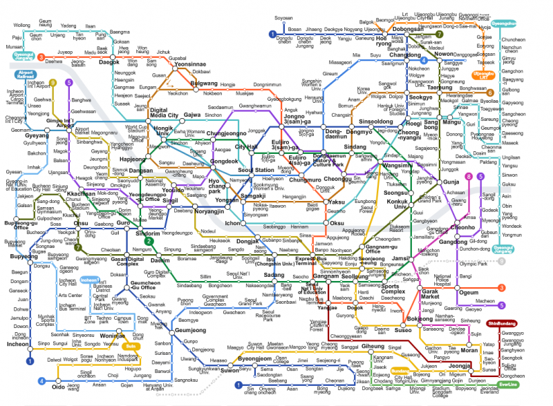Seul metrosu tam 9 tane hattan oluşuyor. Şu adresten en güncel haline ulaşabilirsiniz.