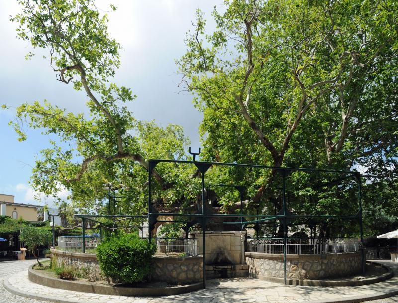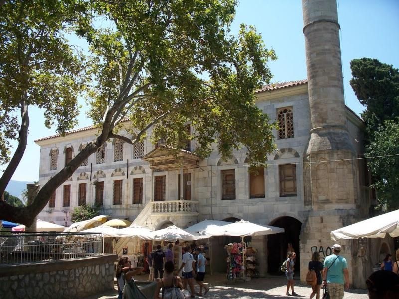 Kale (Osmanlı dönemindeki adı Narence) surlarının yanından yürüyerek, önce adanın meydanına gidiyoruz. Burada Osmanlı döneminden kalma, adanın ibadete açık tek camisi olan Defterdar Camii’ni görüyoruz. Ancak asıl ziyaret etmek istediğimiz yer, bugün kapalı hâlde duran, limandan 100 metre kadar uzakta ve ilginç mimarisiyle adaya gelen turistlerin -ki bugünlerde bulmak zor- uğrak yerlerinden olan Cezayirli Gazi Hasan Paşa Camii (1786), önündeki asırlık Hipokrat Çınarı ve hemen altında gene Cezayirli Gazi Hasan Paşa tarafından yaptırlan mermer çeşme.