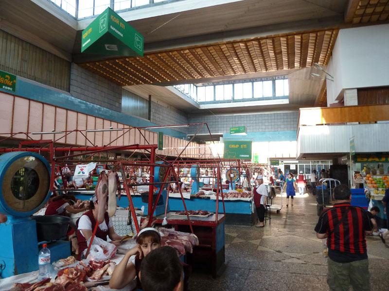 Almatılılar için Yeşil Pazar yıllardır şehrin en önemli alışveriş noktası olmuştur. Bu büyük pazarda sebze, meyve, şarküteri ürünleri, baharatlar, şifalı otlar, kuru meyveler, kuruyemiş, bal gibi pek çok yiyecek satılıyor. Yiyeceklerin dışında tekstil ürünleri ve mobilya gibi farklı ürünler de satılmaktadır. Geniş bir ürün seçkisine sahip olan pazar, Orta Asya pazar kültürünü keşfetmek için çok ideal bir noktadır. Alışveriş yaparken yorulanların dinlenebileceği kafeler de bulunmaktadır. Ziyaretçilere ürünlerini tattıran pazarcılarla bir ürün alırken de pazarlık yapmayı ihmal etmemek gerekir. Zhibek Zholy Caddesi üzerinde bulunan pazar iki katlıdır ve Zelyonni Pazarı olarak da bilinmektedir.