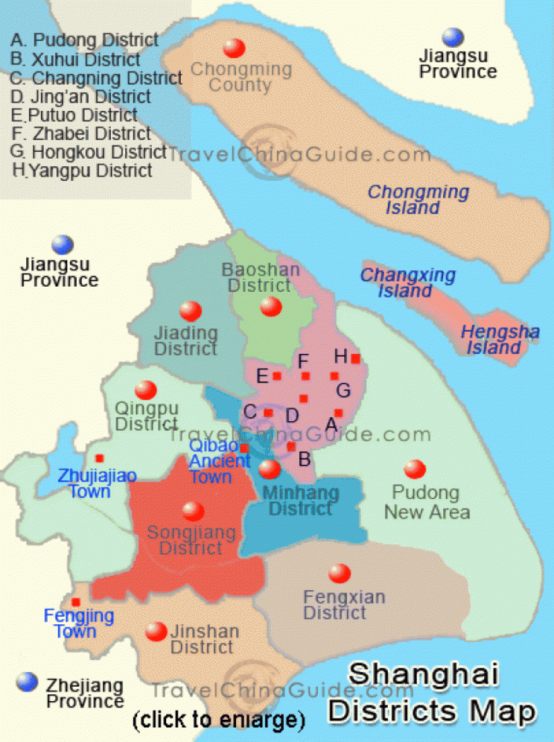 Şanghay’da toplamda 10 ticari bölgeye ayrılmıştır. Bu bölgeler Jian’an, Yangpu, Hongkou, Zhabei, Putuo, Changning, Xuhui, Jiading, Minhang ve Pudong New Area olarak bilinirler. Bu bölgeler arasında Şanghay’ın en önemli kültürel, tarihsel ve turistik özelliklerini taşıyan ve en çok tercih edilen üç bölgesine yer verdik.