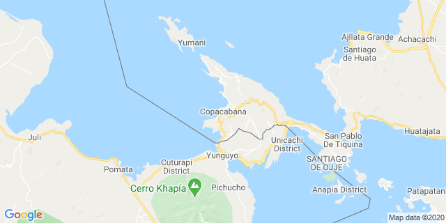 Bolivya’nın sahil kenti CopacabanaTiticaca Gölü’nün kıyısındadır. Aymara dilinde “kota kahuna” demek olan kentin ismi “gölün görünümü” anlamına gelmektedir. Fakat sosyal bilimci Mario Montano Aragon’un yaptığı incelemeler kentin ismiyle ilgili yeni bir yorumu da doğurmuştur. Buna göre şehrin ismi “kotakawana” kelimesinden gelmektedir. Bu ise Andean mitolojisinde Yunan mitolojisindeki Afrodit’e muadil fakat androjen bir tanrının ismidir ve bu tanrı Titicaca gölünde yaşamaktadır.