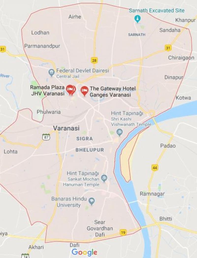 Şehrin içinden geçen Varuna Nehri’ni diğer yaka ile bağlayan Varuna Köprüsü civarında yer alan oteller bölgesi bir diğer önerimiz. Bu bölgede çeşitli fiyat yelpazesi içerisinde hizmet sunan farklı nitelikte, eski şehir merkezine göre de daha modern tesisler bulunuyor.