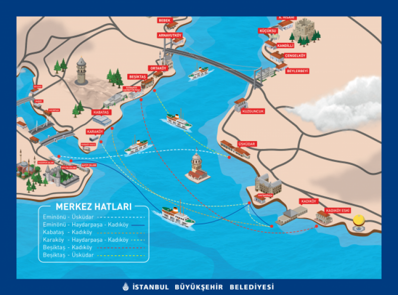 Günde 600 sefer ile iki yakayı birbirine bağlayan şehir içi vapur hatları yılda 40 milyon yolcu taşıyor. İstanbul genelinde 17 hat, 50 iskele, 28 gemi ve bu hatlarda çalışan 950 personel mevcut. Kökleri 1851'e dayanan deniz hatları günümüzde hem günlük ulaşım hem de turistik amaçlı sıkça kullanılıyor.