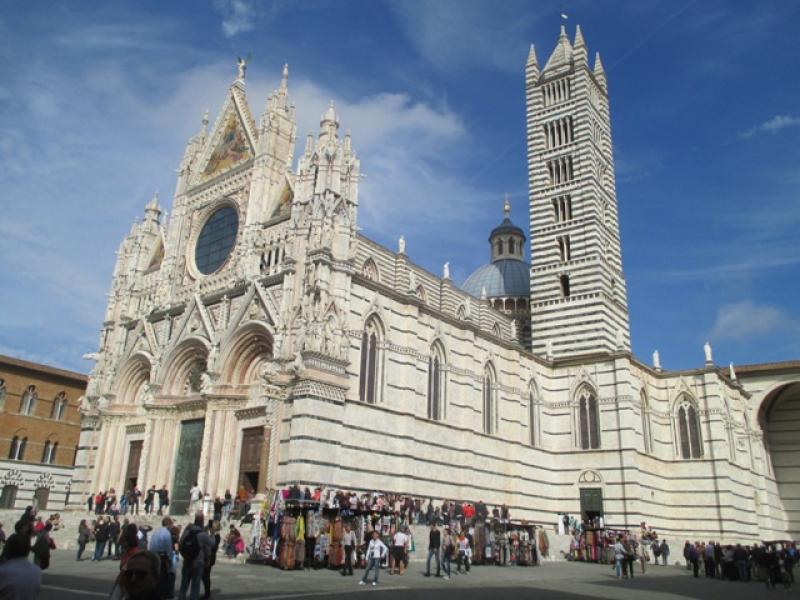 İtalya’nın önde gelen Gotik mimailerinden biri olan Santa Maria Assunta Katedrali, heykellerle süslenmiş kabartmalı ön cephesiyle oldukça büyüleyici görünmektedir. Kilise Siena’nın kırmızı tuğlalarla kaplı binalarına tezat düşecek şekilde oldukça beyaz renkli kontrast ve mermerli çizgileri ile Siena’nın diğer binalarından farklı durumdadır. Kilisenin içindeki duvar, tavan ve şapel süslemeleri dikkat çekmektedir. Ayrıca bodrum, kütüphane, dolgulu freskler, heykeller, taş ve ahşap oymaları, resim, altın ve gümüş çalışmaları, el yazmaları ve mozaikleriyle İtalya’nın seçkin dini yapılarından biridir.