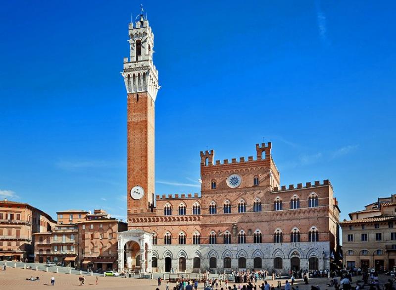 Siena’nın eski şehir merkezinin önemli yerlerinden biri olan Piazza del Campo, geniş bucaksız saraylar ve kavisli bina cepheleri ile çevrilidir. Piazza del Campo’nun en belirgin ve dikkat çekici özelliği ise uzun zarif kulesidir. Bu birlik İtalya’nın en güzel şehir meydanlarından birini oluşturmaktadır. Yapının önünde Fonte Gaia isimli dikdörtgen bir çeşme havzası da bulunur. Meydanın çevresinde ki hemen hemen tüm yapılar tarihe geçmişe sahiptir. Tüm bu özellikleriyle Piazza del Campo, Siena’da mutlaka görülmesi gereken yerlerden biri olmaktadır.