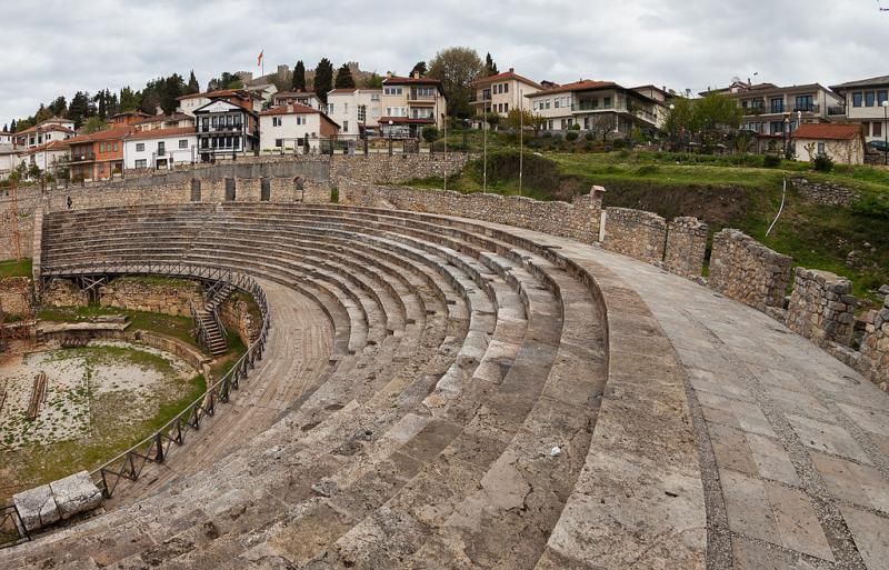Ohri Antik Tiyatrosu ülkedeki Roma döneminin izlerini taşıyan Scupi, Stobi ve Heraklea Lynkestis’in aksine Helenistikdöneme ait tek tiyatrodur. M.Ö. 200 yılında inşa edilmiş olan tiyatrodan, günümüze sadece alt bölümünün kalmış olması, orijinal tiyatronun toplamda kaç kişilik olduğu hakkında varsayımları zorlaştırmıştır. Bugün halen kaç kişilik olduğu bilinmemektedir. Açık tiyatro onu çevreleyen iki tepe arasındaki konumu sebebiyle, performanslar sırasında rüzgardan korunarak, akustiği koruyabilmektedir.