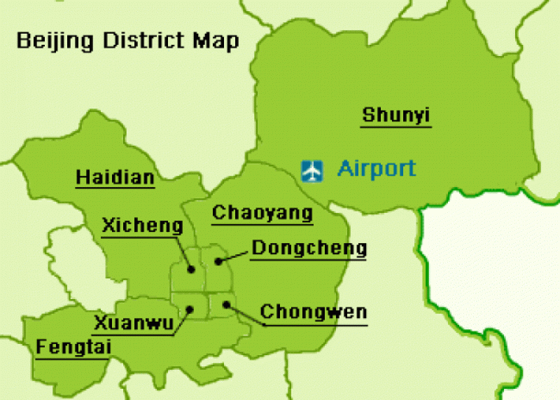 Pekin şehri Shunyi, Haidian, Fengtai, Xuanwu, Xicheng, Dongcheng, Chonwen ve Chaoyang semtlerine ayrılmıştır. Konaklamak için en uygun noktalar ise turistik bölgelere yakın Chaoyang, Xicheng ve Chaoyang’tır.
