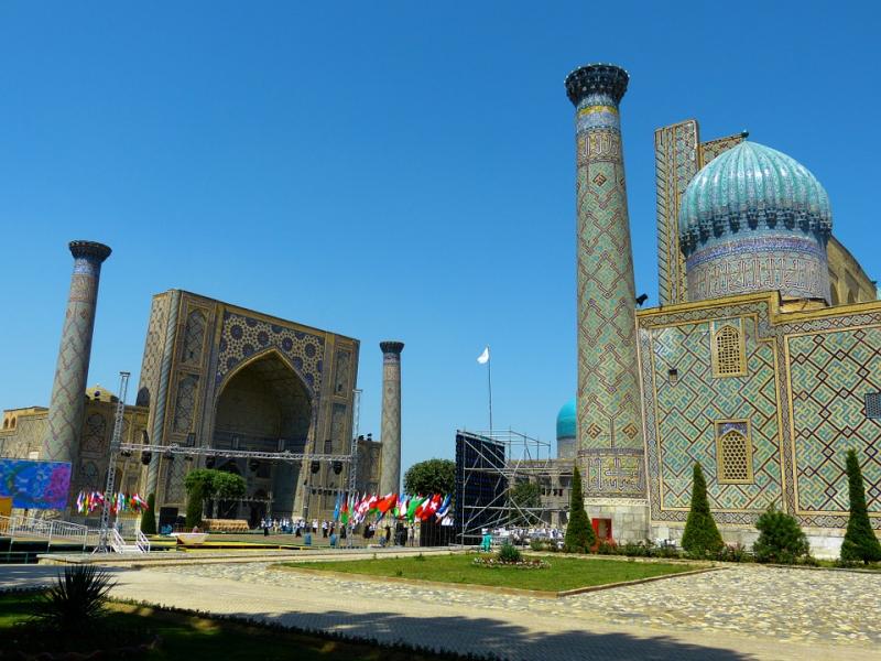 Yüzyıllar boyunca tarihin ve kültürlerin önemli bir geçiş noktası olan Semerkand şehrinde gezilecek yerler daha çok anıtlar, müzeler ve camilerden oluşur. Şehirdeki her yapıda mimari bir ihtişam dikkat çeker.