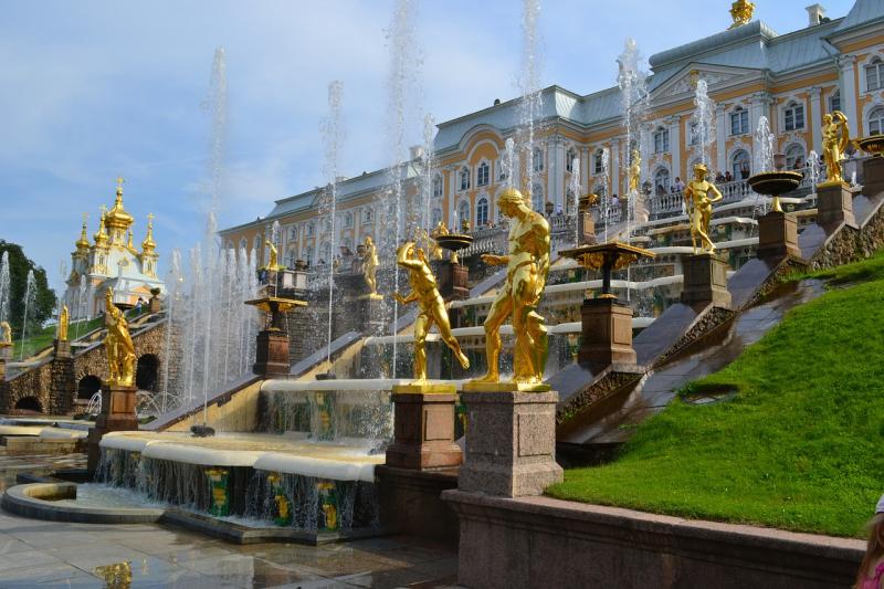 Peterhof Sarayı, Fransa’daki Versay Sarayı’ndan etkilenilerek Rus Çarı Petro tarafından Baltık denizi kıyısına yaptırılmıştır. Baltık Denizi kıyısında, oldukça büyük bir alana kurulmuş olan saray, devasa bahçeleri ve çeşmeleri ile ilgi çekmektedir. 1700'lü yılların başında Mimar Jean Baptiste Le Blond tarafından yapılan sarayın inşasında 5 binden fazla kişinin çalıştırıldığı düşünülmektedir.