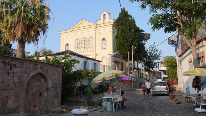 Taksiyarhis Kilisesi, Cunda Adası’nın en önemli tarihi yerlerinden biridir. Kilise, adaya henüz yaklaşırken olanca heybetiyle görünmekte ve sanki duruşuyla tüm adayı korumaktadır. Bu kilise, Ortodoks Rumlar tarafından 1873 yılında inşa edilmiştir. Kilise, eski bir kilise olan Anakent Kilisesi’nin temelleri üzerinde yükseltilmiştir. Tamamlandığında ise Taksiyarhis yani koruyucu meleklerden Cebrail ve Mikail’e armağan edilmiştir. 1927-28 yıllarında, kilise bünyesine bir minare eklenerek yapı camiye dönüştürülmüştür.